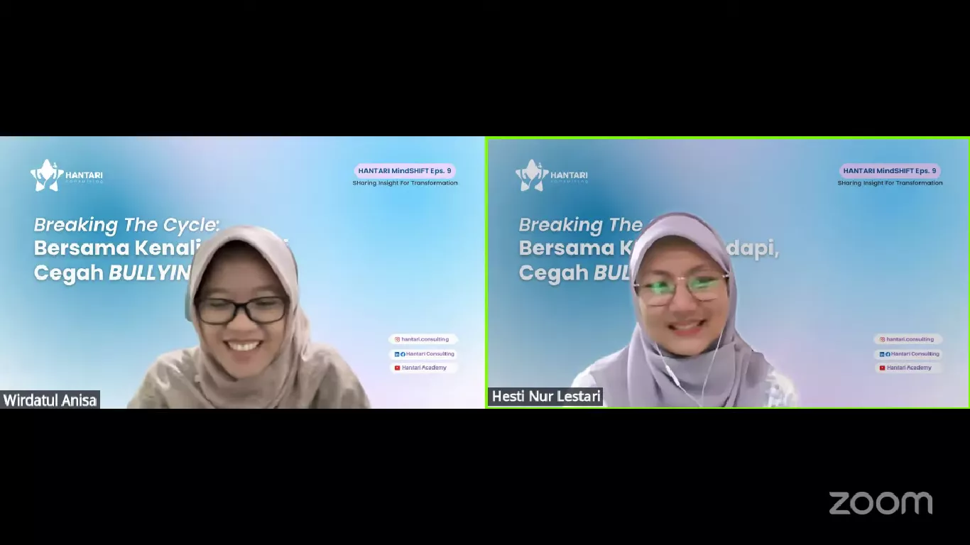 Jakarta, 22 Desember 2025 – Perundungan (bullying) bukan lagi sekadar masalah kenakalan remaja di sekolah, melainkan isu sistemik yang merambah hingga lingkungan kerja dan komunitas. Menjawab urgensi ini, Hantari Consulting sukses menggelar webinar edukasi publik Hantari MindShift Episode 9 bertajuk "Breaking the Cycle: Bersama Kenali, Hadapi, Cegah BULLYING" pada Sabtu, 20 Desember 2025.
