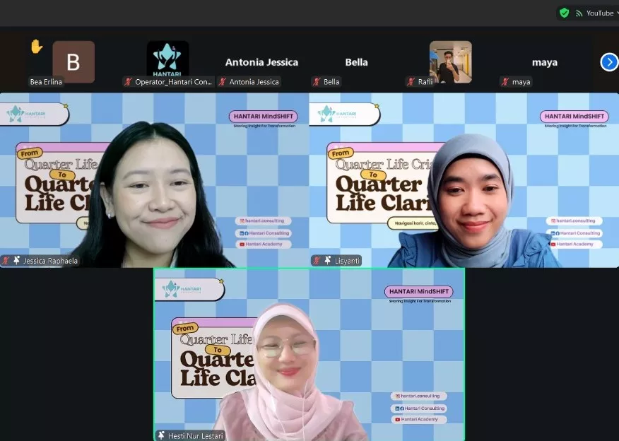Dihadiri oleh 115 peserta, sesi ini menyadarkan kami bahwa fase seperempat abad memang penuh tantangan. Melihat antusiasme diskusi dan banyaknya pertanyaan yang masuk, kami semakin yakin bahwa Hantari harus terus hadir sebagai teman diskusi yang valid dan suportif dalam melewati masa-masa krisis ini.